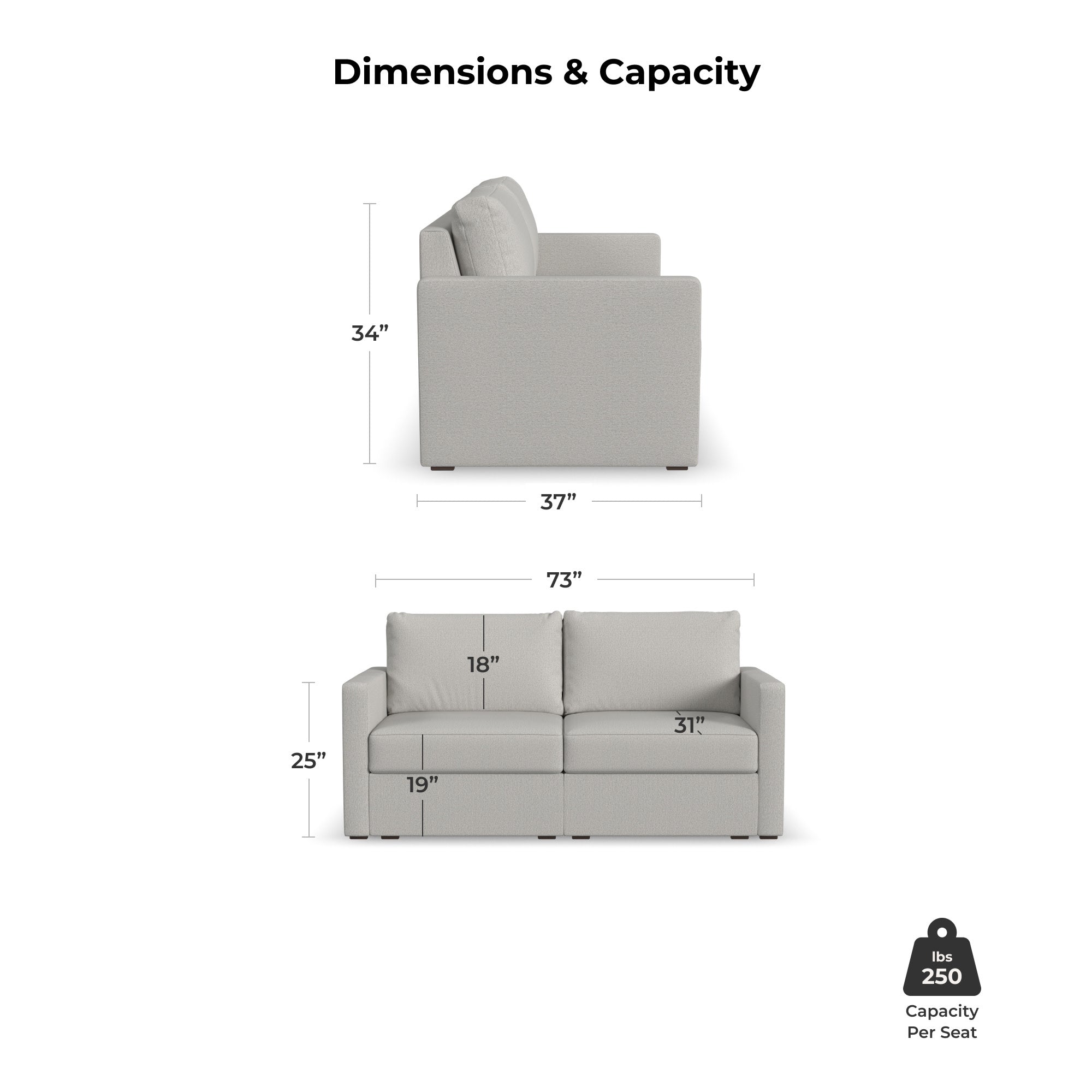 CONFIGUREDesigned for a lifetime of flexibility, the Flex loveseat offers comfortable seating for two that can be easily expanded as needs change. Built with Blue Steel Spring technology and sustainable stain-resistant performance fabric, the Flex loveseat provides deep-seated, blissful comfort and long-lasting durability. And assembly is a breeze with a patented J-Bracket™ “no-tool” method that takes minutes, rather than hours.