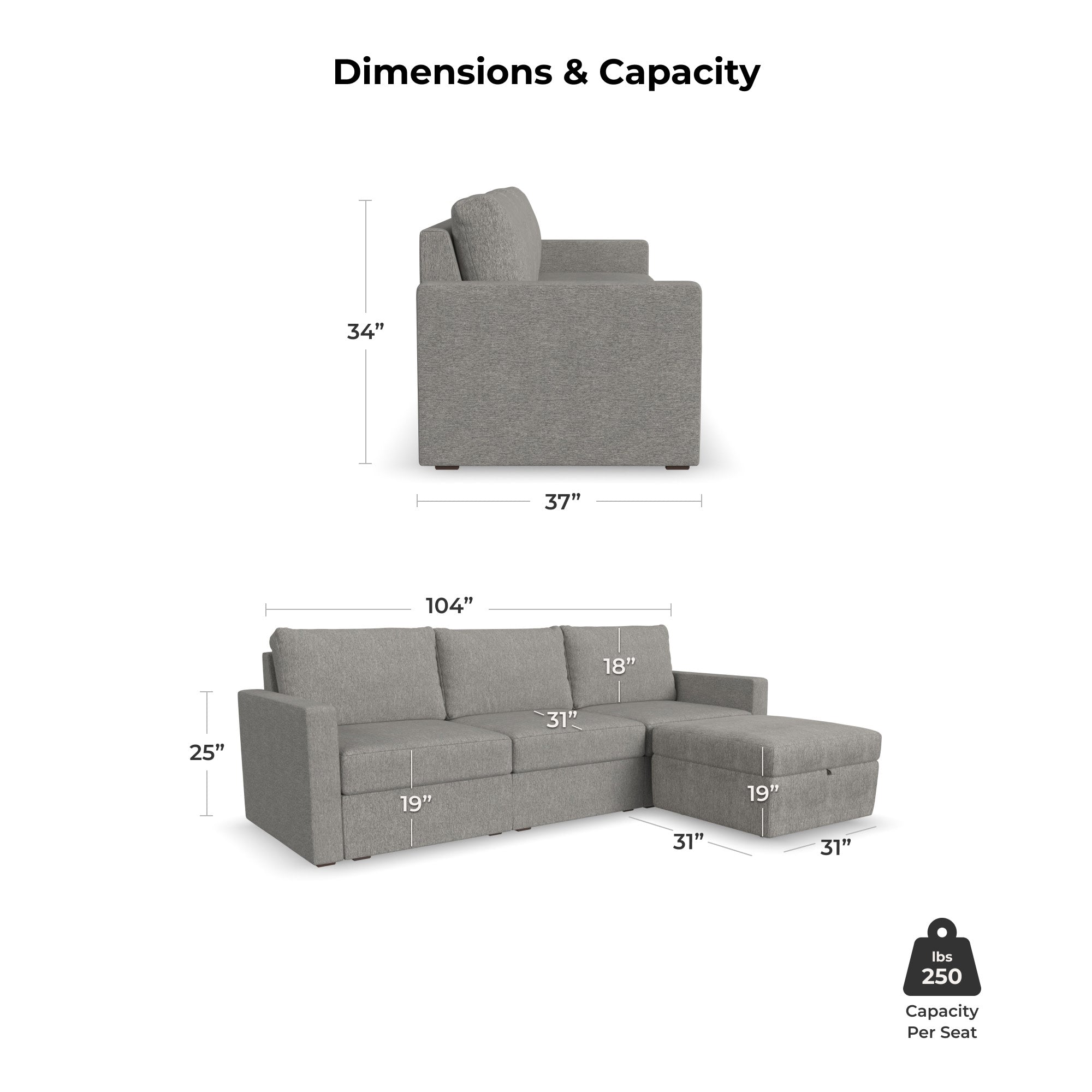 Flex Sofa with Standard Arm and Storage Ottoman - Pebble