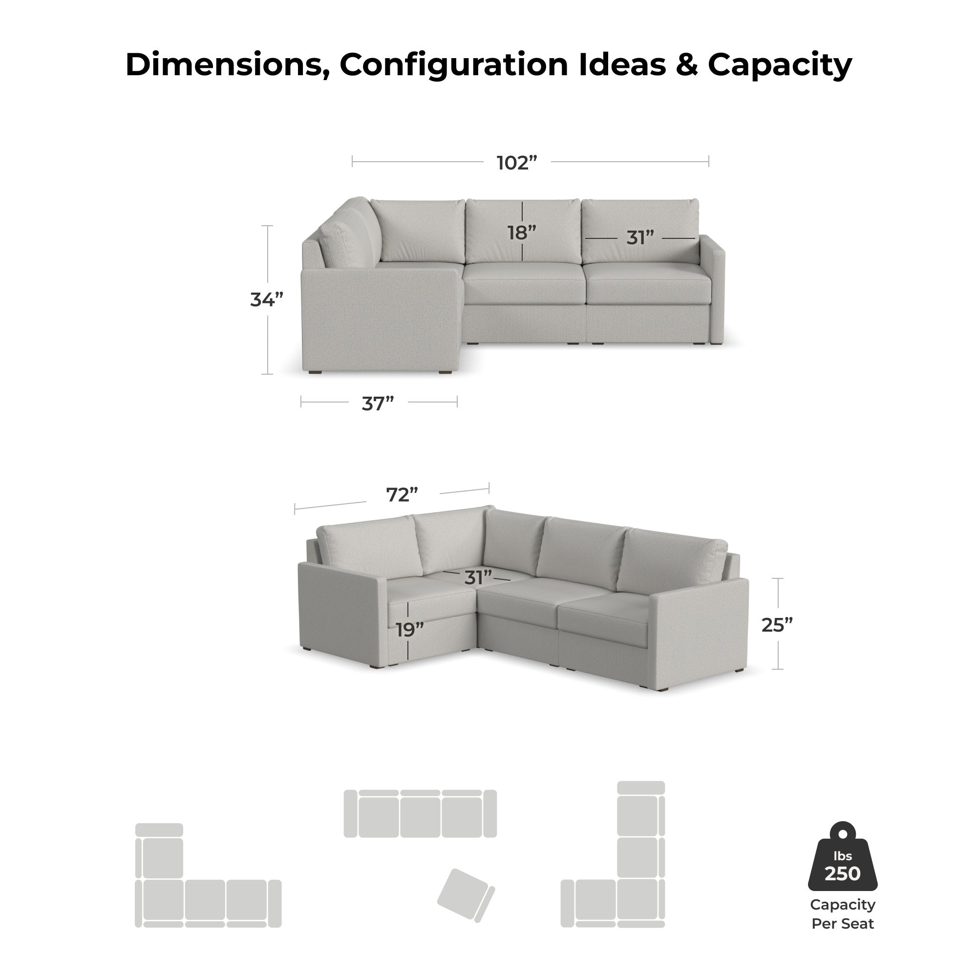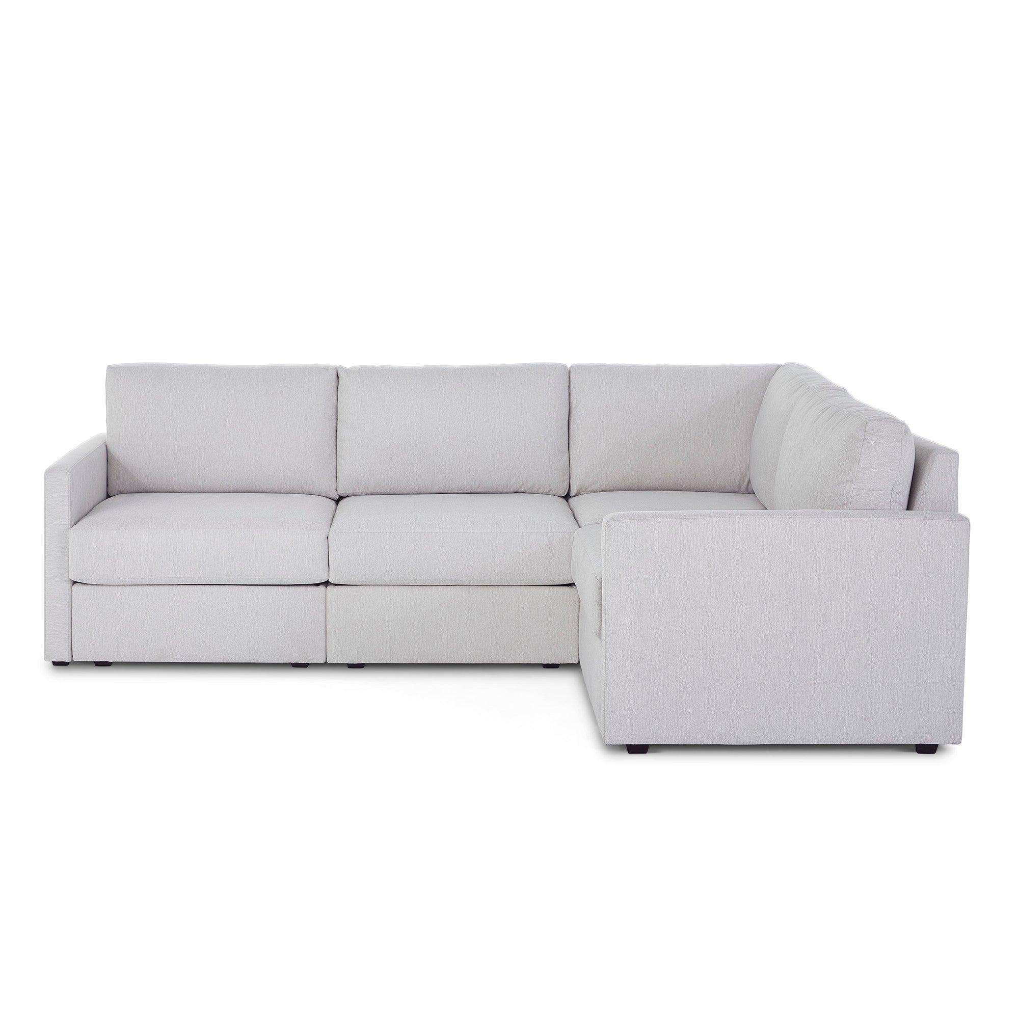 CONFIGUREDesigned for a lifetime of flexibility, the Flex 4-seat sectional supports the space you have now and can easily expand when your home does. Modular components allow a multitude of configurations so you can create the perfect seating arrangement. Built with Blue Steel Spring technology and sustainable, stain-resistant performance fabric, Flex seating provides deep-seated, blissful comfort and long-lasting livability. And assembly is a breeze with a patented J-Bracket™ “no-tool” method that takes minutes, rather than hours.