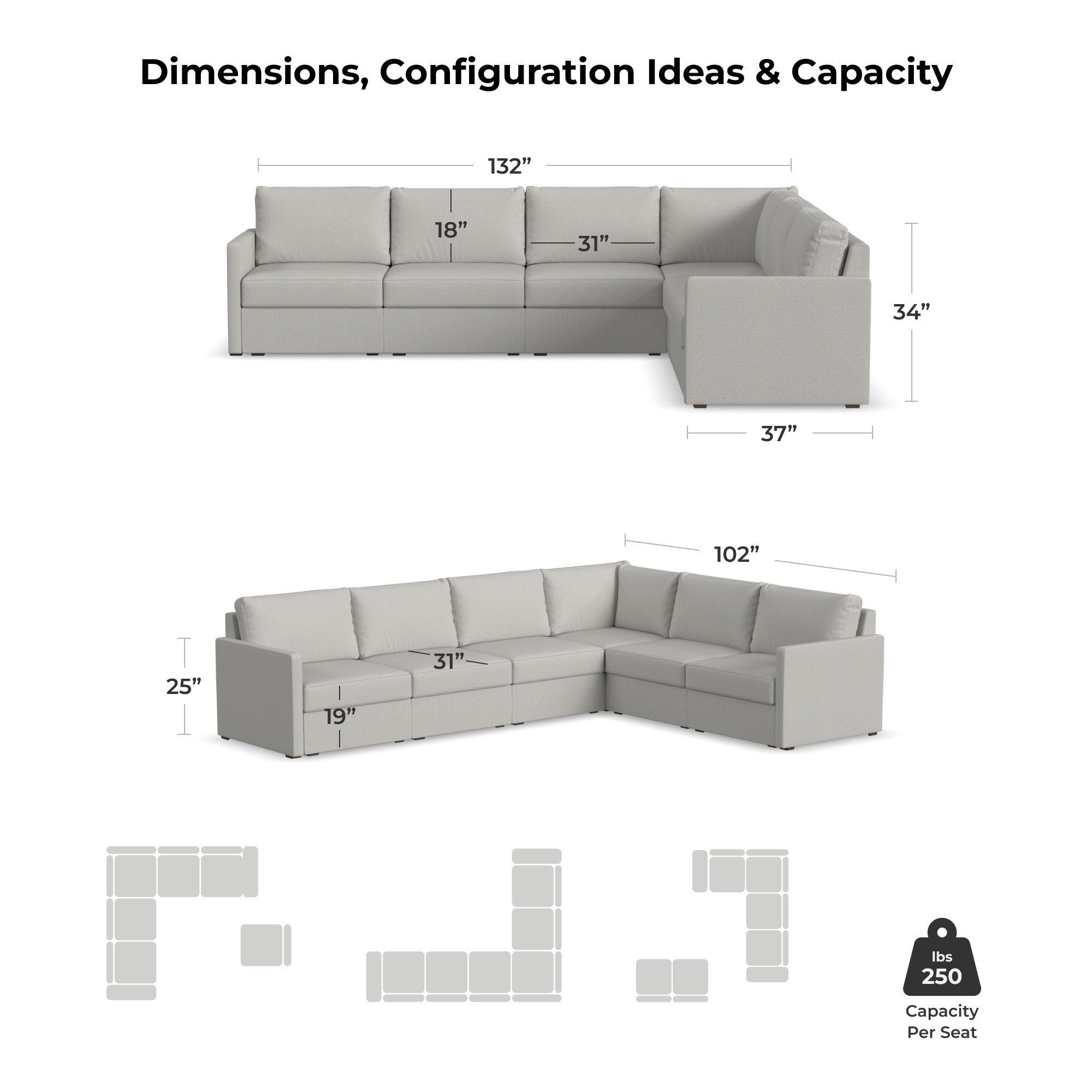 Designed for a lifetime of flexibility, the Flex 6-seat sectional provides the ultimate relaxation zone for gatherings and can be easily reconfigured again and again to create the perfect seating arrangement. Built with Blue Steel Spring technology and sustainable, stain-resistant performance fabric, Flex modular seating provides deep-seated, blissful comfort and long-lasting livability. And assembly is a breeze with a patented J-Bracket™ “no-tool” method that takes minutes, rather than hours.