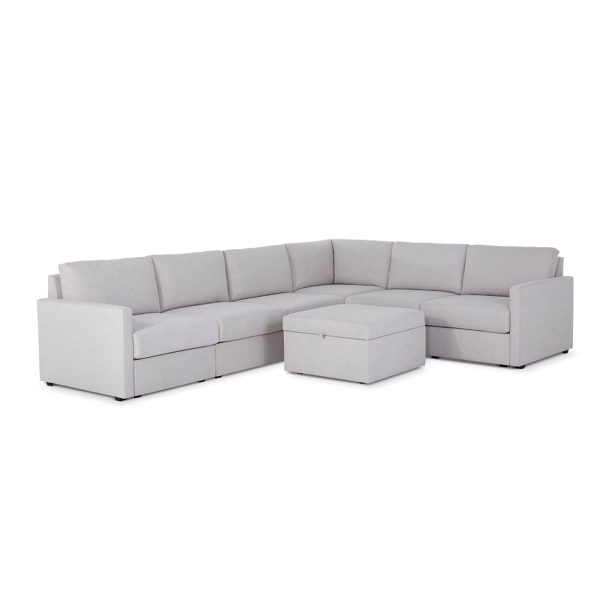 Flex 6-Seat Sectional with Narrow Arm and Storage Ottoman - Frost