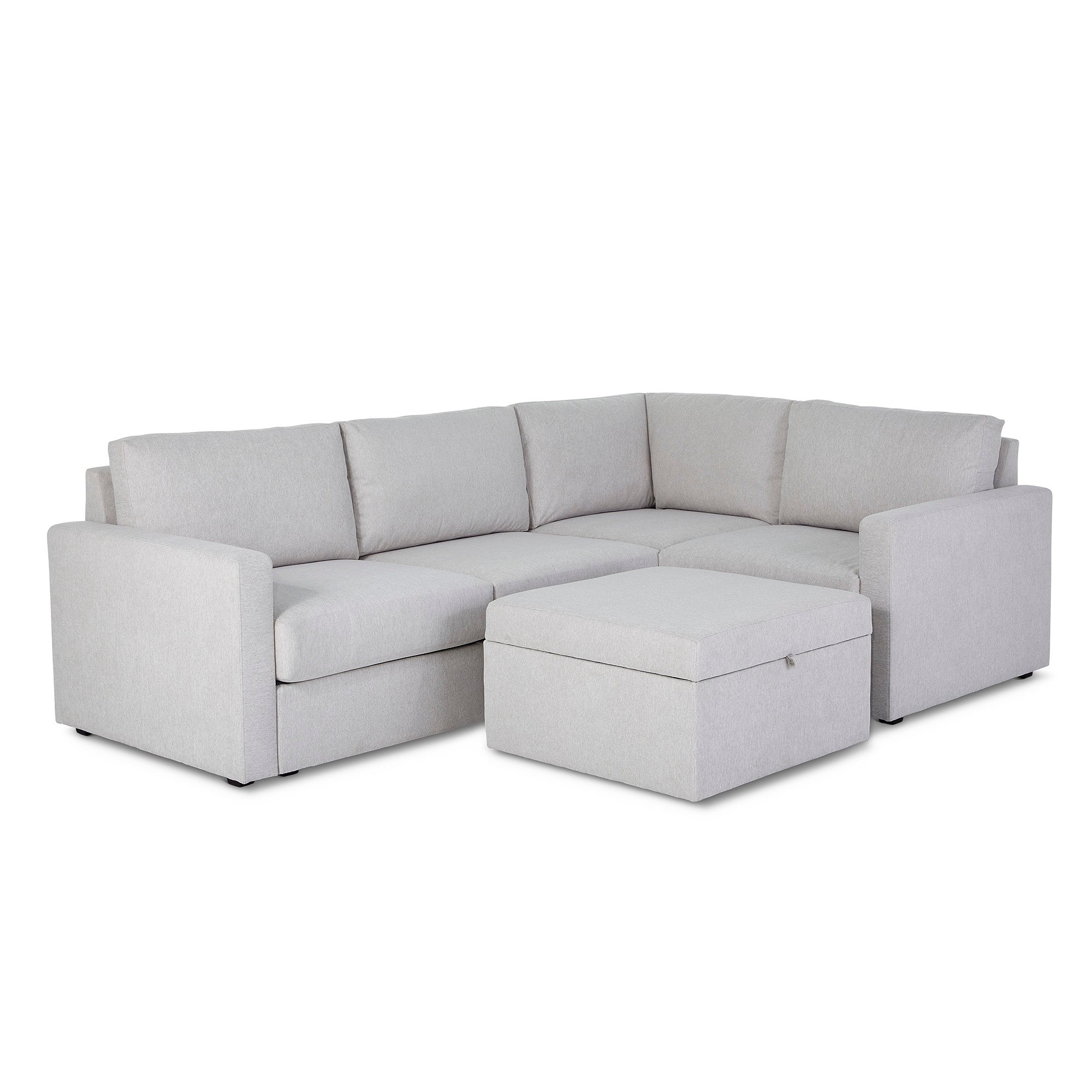 Flex 4-Seat Sectional with Standard Arm and Storage Ottoman - Frost