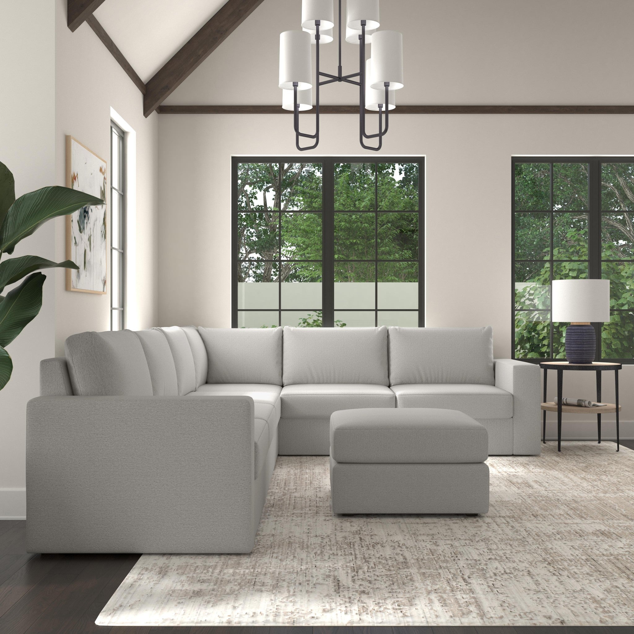 Flex 6-Seat Sectional with Wide Arm and Ottoman - Frost