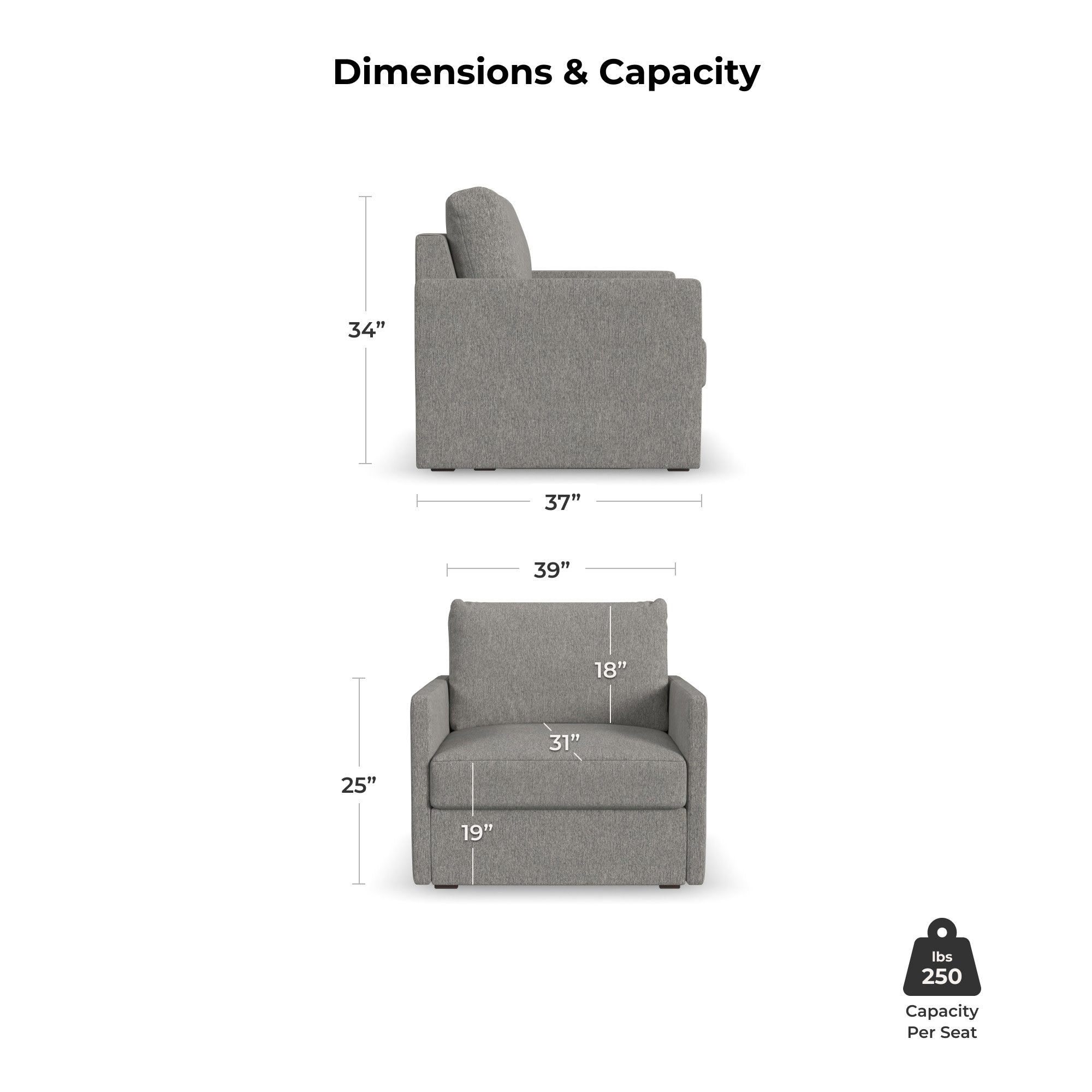 Designed for a lifetime of flexibility, the Flex chair creates a perfect spot to sit solo or can be combined with other Flex modular seating when it’s time to expand. Built with Blue Steel Spring technology and sustainable stain-resistant performance fabric, the Flex chair provides deep-seated, blissful comfort and long-lasting durability. And assembly is a breeze with a patented J-Bracket™ “no-tool” method that takes minutes, rather than hours.