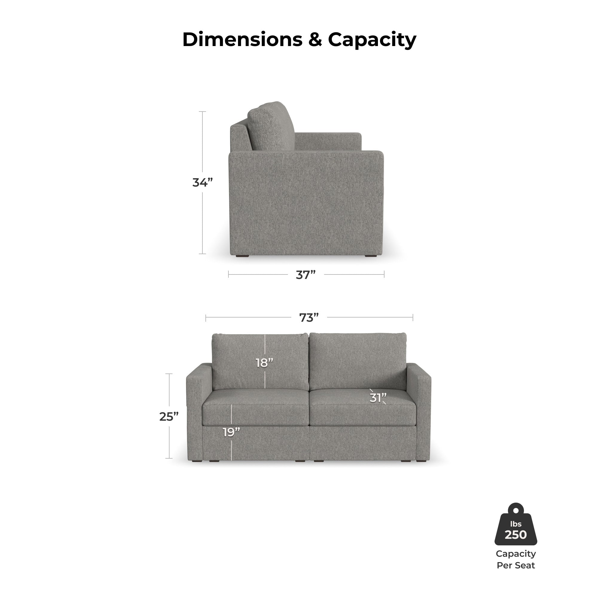 Designed for a lifetime of flexibility, the Flex loveseat offers comfortable seating for two that can be easily expanded as needs change. Built with Blue Steel Spring technology and sustainable stain-resistant performance fabric, the Flex loveseat provides deep-seated, blissful comfort and long-lasting durability. And assembly is a breeze with a patented J-Bracket™ “no-tool” method that takes minutes, rather than hours.