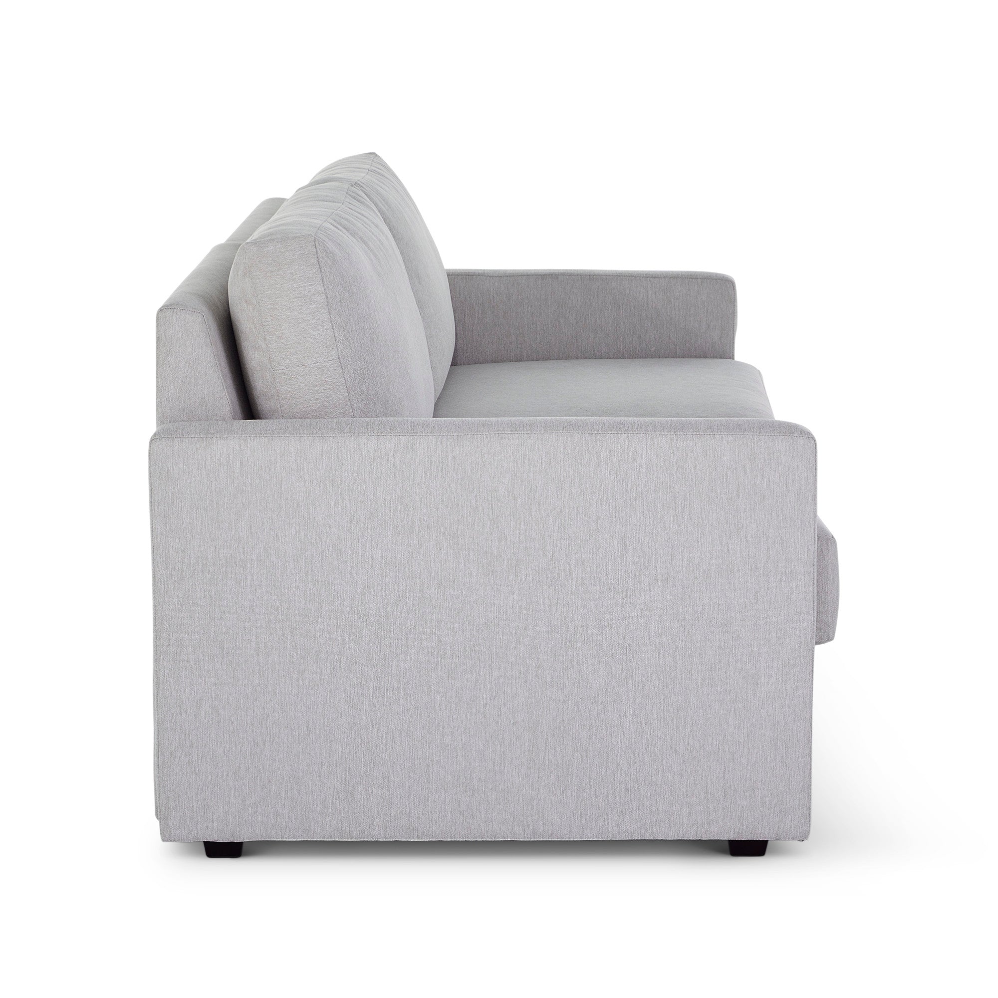 - Upholstered in a light gray performance fabric that is sustainably made with recycled water bottles and delivers exceptional stain- and water-resistance for easy cleanability, making it the perfect choice for active families and pets