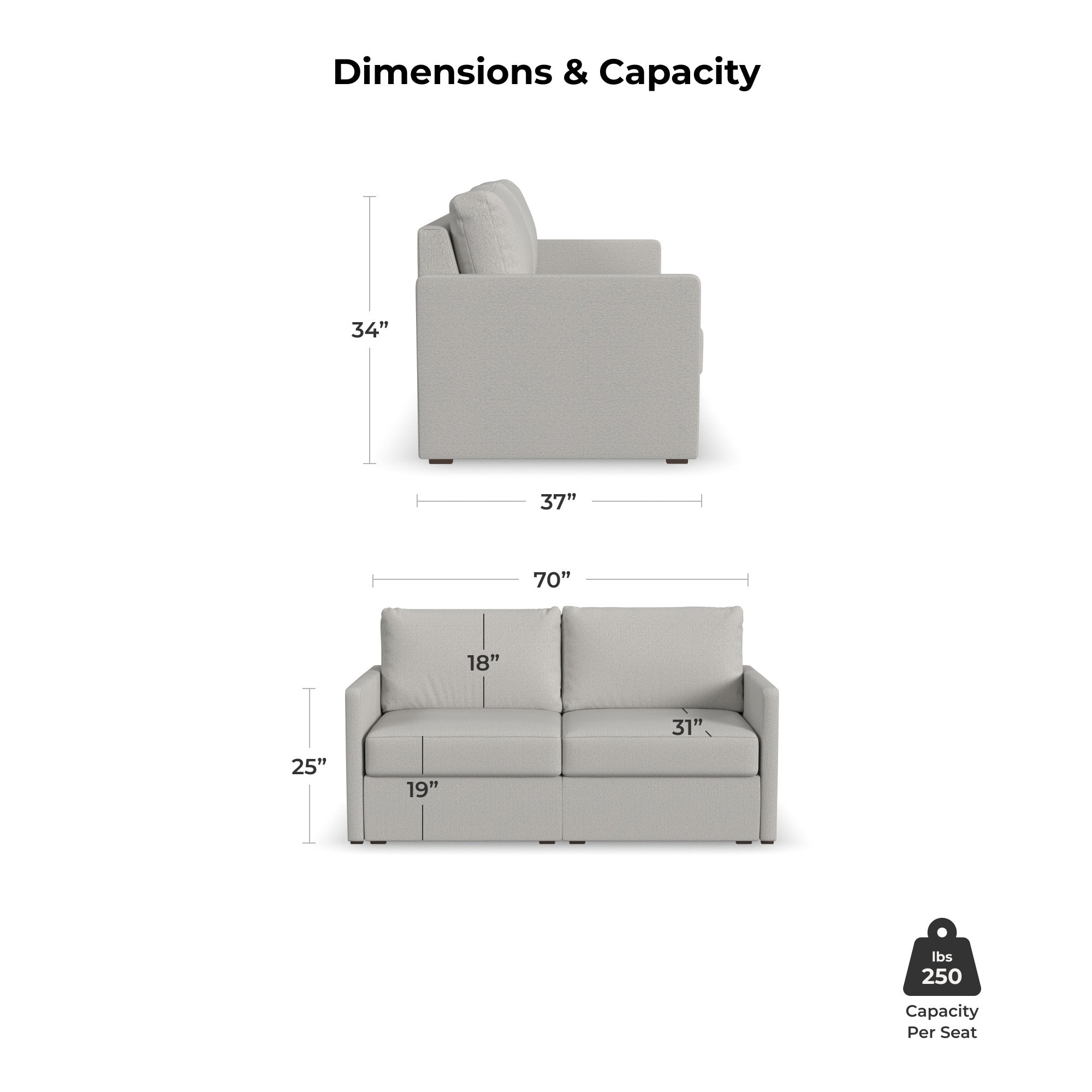 Designed for a lifetime of flexibility, the Flex loveseat offers comfortable seating for two that can be easily expanded as needs change. Built with Blue Steel Spring technology and sustainable stain-resistant performance fabric, the Flex loveseat provides deep-seated, blissful comfort and long-lasting durability. And assembly is a breeze with a patented J-Bracket™ “no-tool” method that takes minutes, rather than hours.