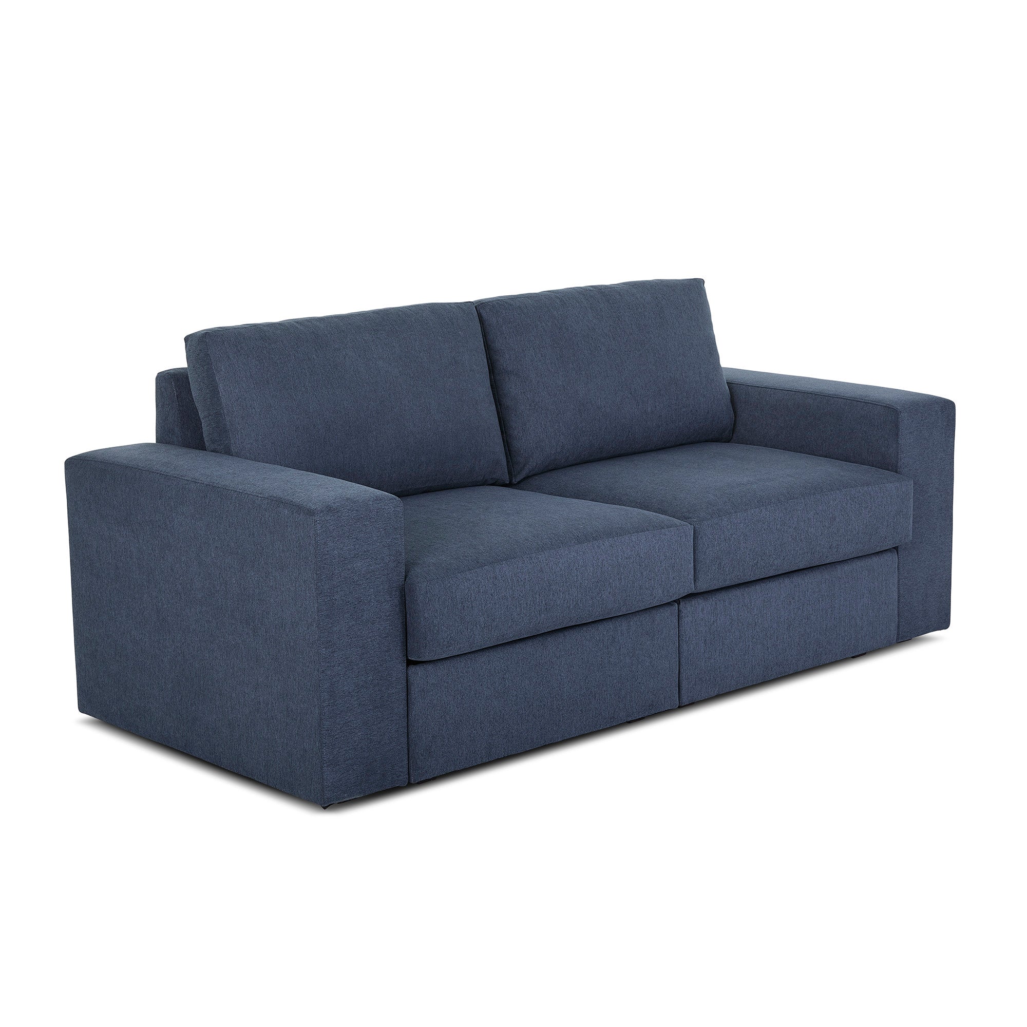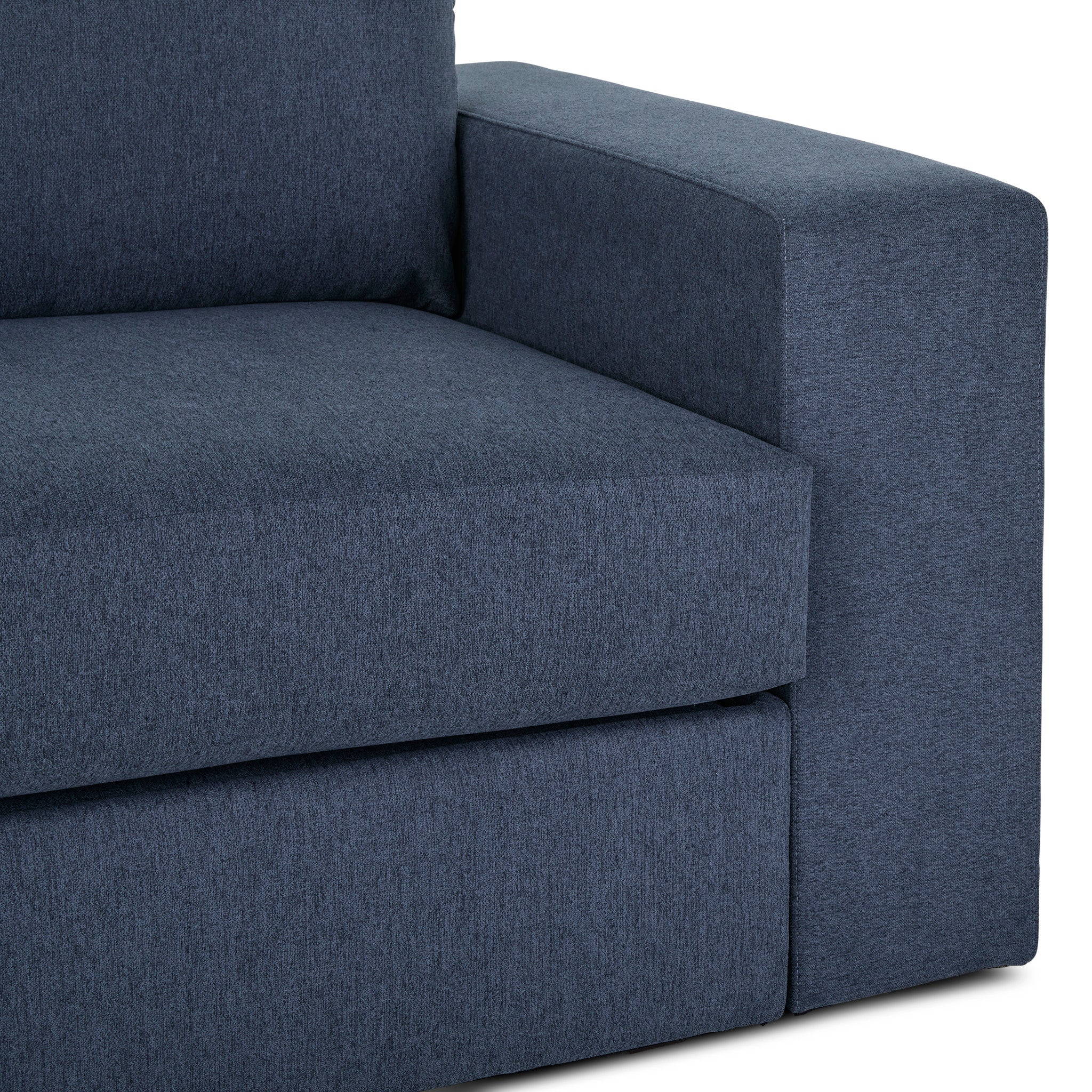 • Upholstered in a denim blue performance fabric that is sustainably made with recycled water bottles and delivers exceptional stain- and water-resistance for easy cleanability, making it the perfect choice for active families and pets