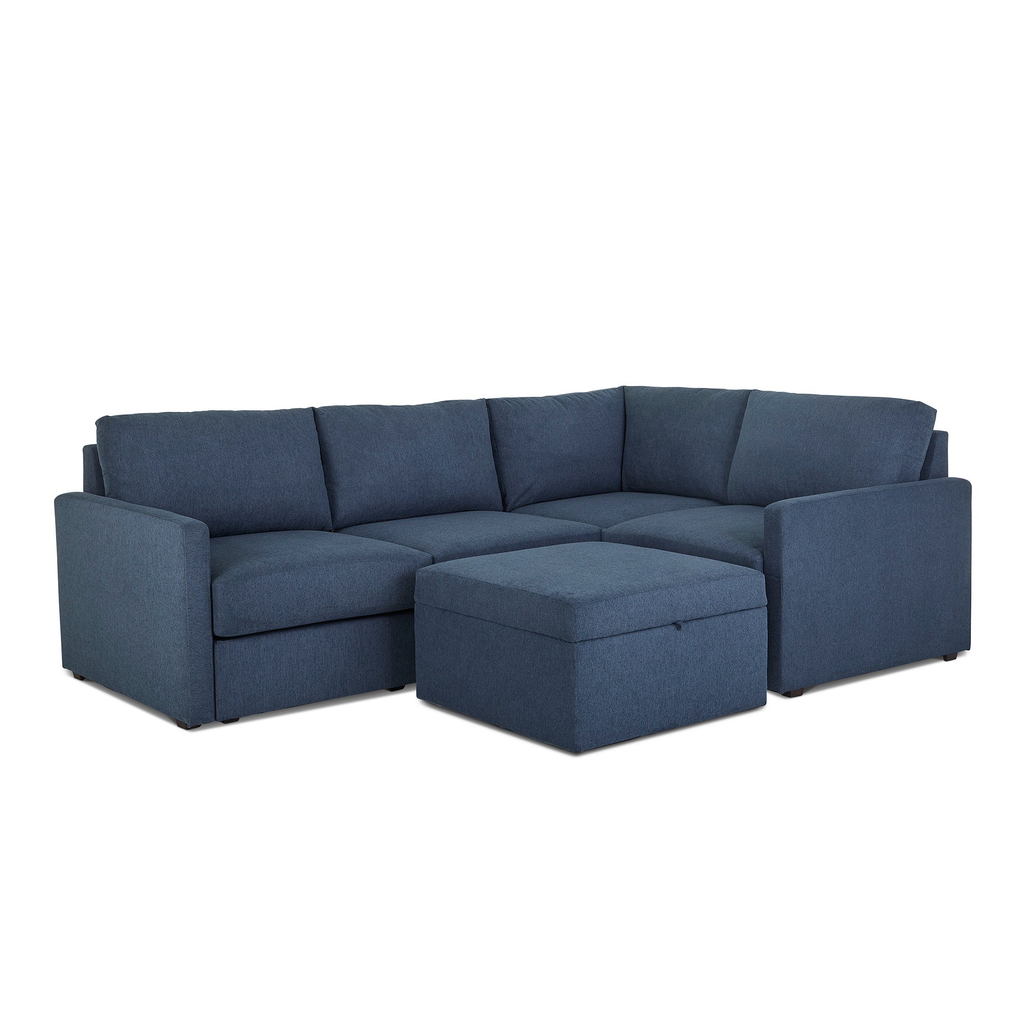 Flex 4-Seat Sectional with Narrow Arm and Storage Ottoman - Denim