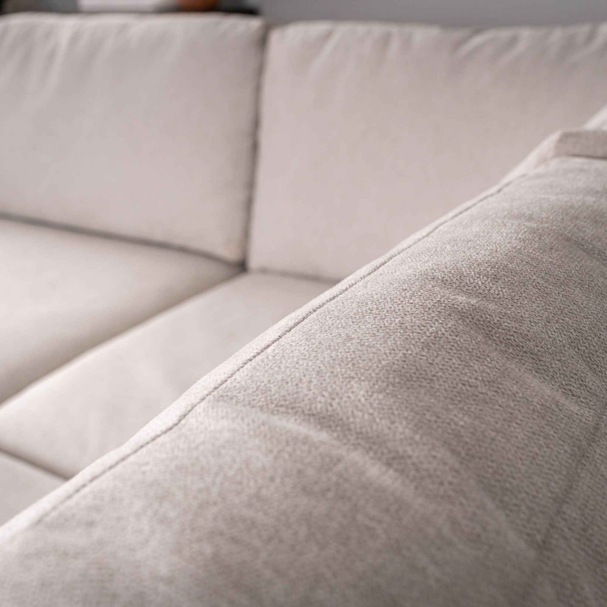 - Upholstered in a light gray performance fabric that is sustainably made with recycled water bottles and delivers exceptional stain- and water-resistance for easy cleanability, making it the perfect choice for active families and pets