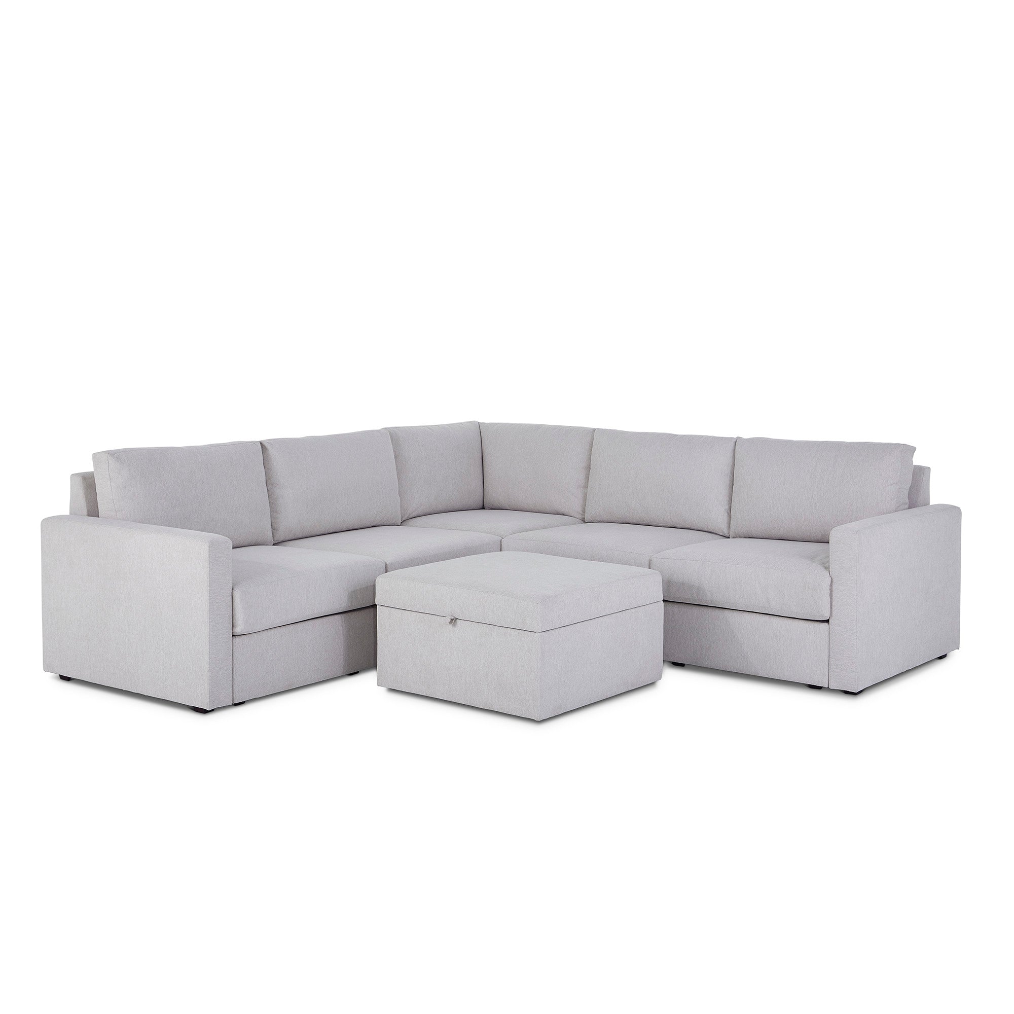 Flex 5-Seat Sectional with Standard Arm and Storage Ottoman - Frost