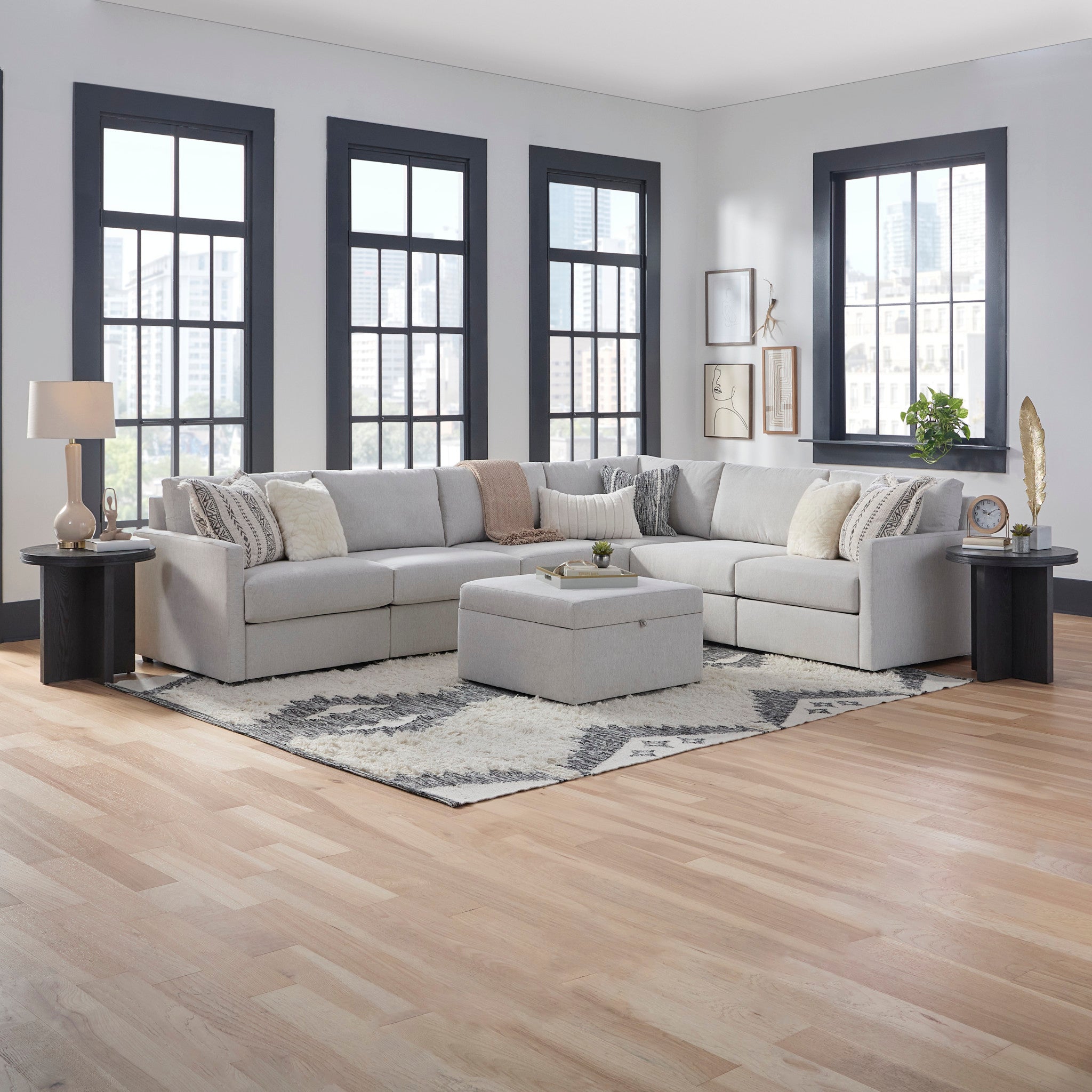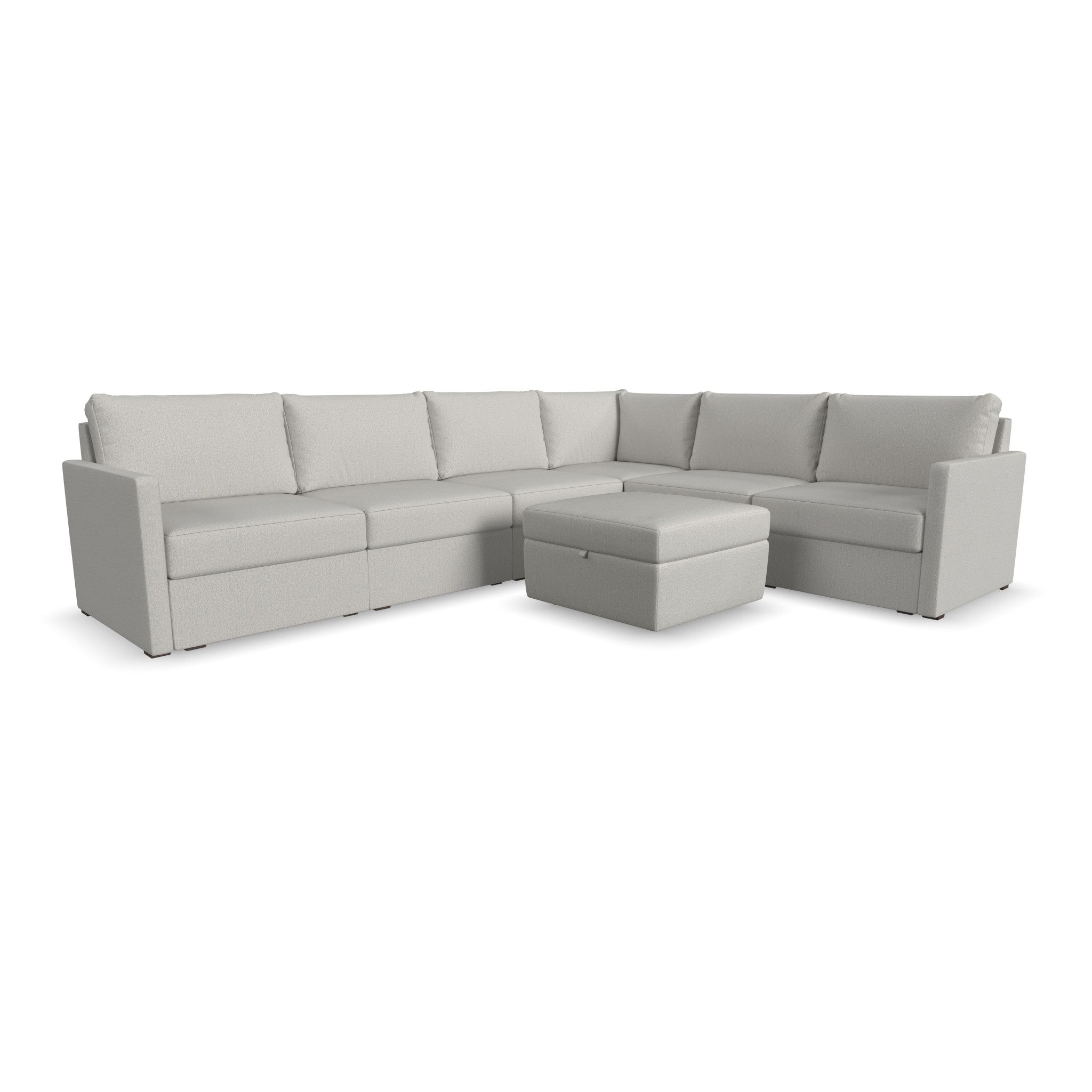 Flex 6-Seat Sectional with Narrow Arm and Storage Ottoman - Frost