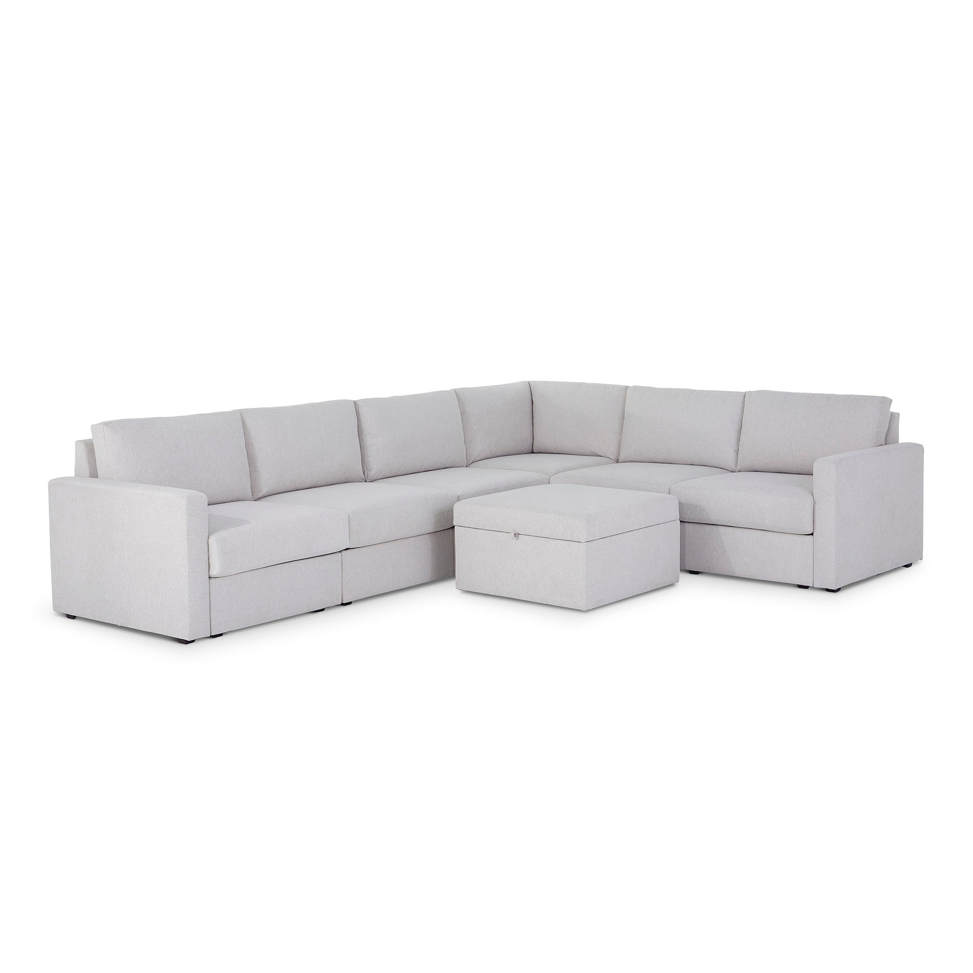 Flex 6-Seat Sectional with Standard Arm and Storage Ottoman - Frost