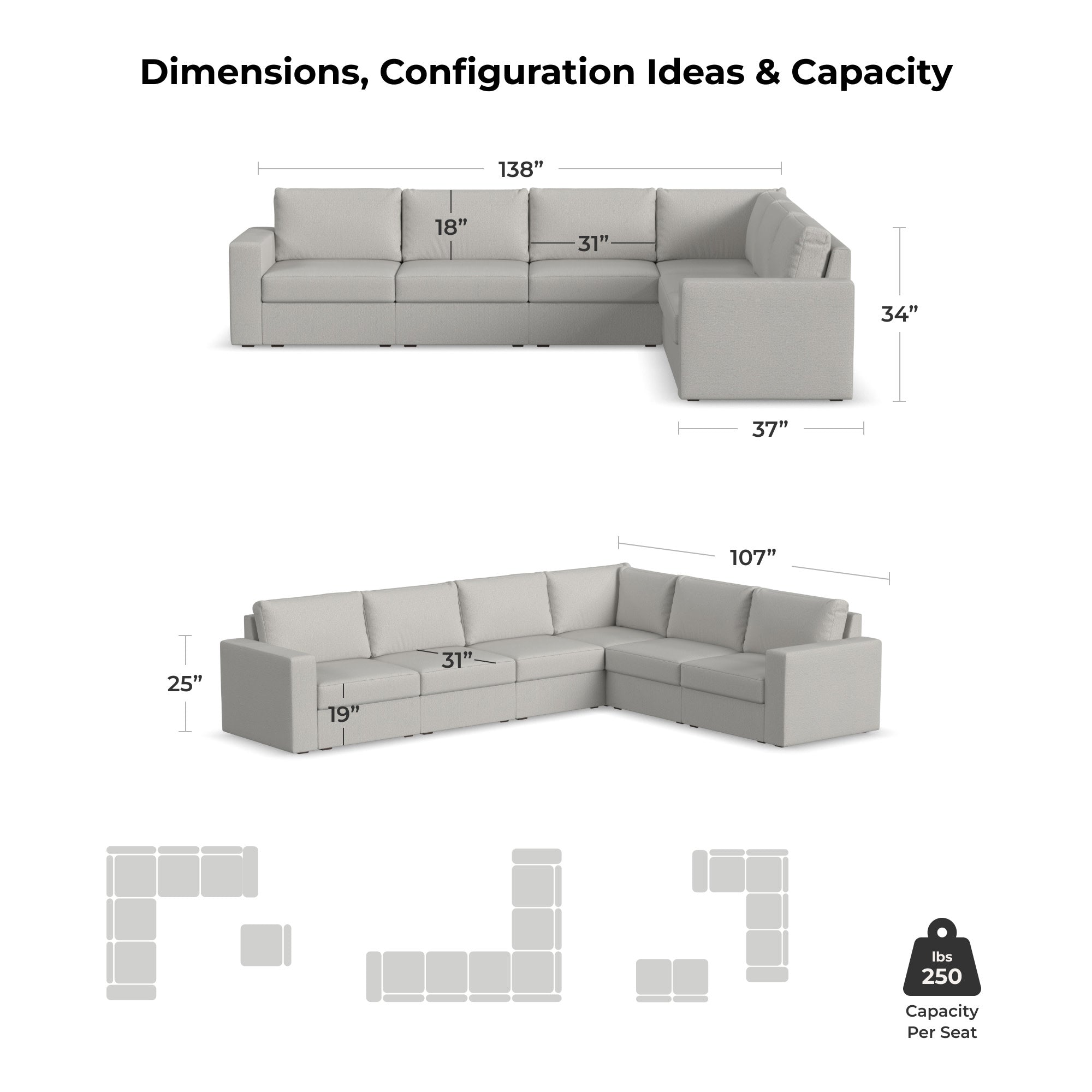 • From chairs to sectionals, add or remove seats, backs and arms to change up the configuration