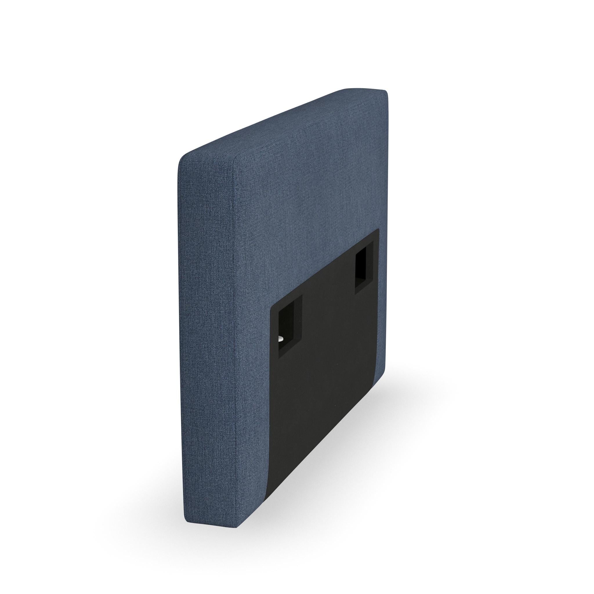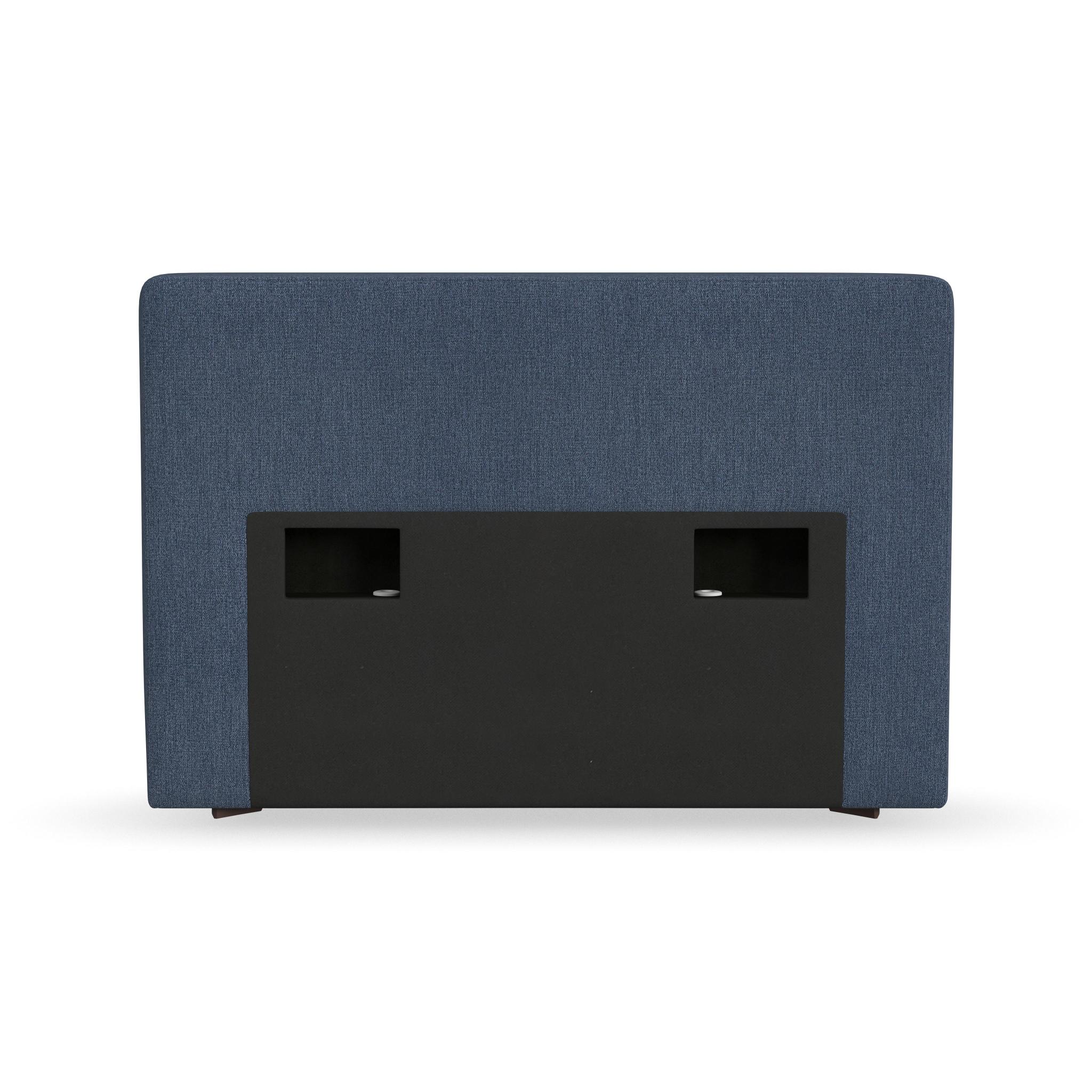 - Upholstered in a denim blue performance fabric that is sustainably made with recycled water bottles and delivers exceptional stain- and water-resistance for easy cleanability, making it the perfect choice for active families and pets